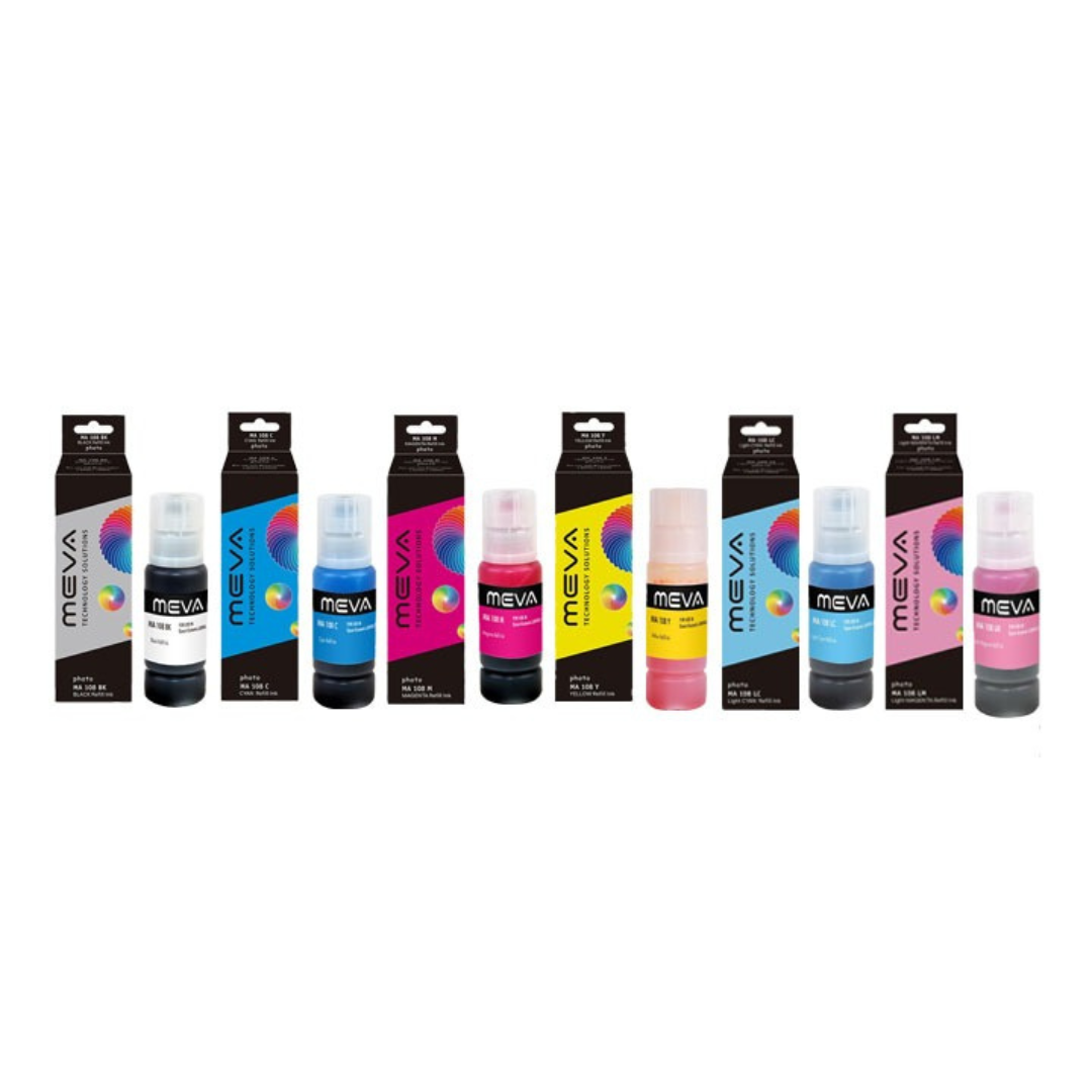 ست 6 رنگ جوهر MEVA ، شامل رنگهای مشکی، آبی، قرمز، زرد، قرمز روشن و آبی روشن است که هر کدام از بطری ها، حاوی 70 میلی لیتر جوهر با کیفیت هستند. جوهر مورد نظر با تمام پرینتر های اپسون 6 رنگ از جمله دستگاه های مدل Epson L800, L810, L850, L1800, T50, P50, 1410, 1430, R290. R295 ,L8050 …. سازگار است.